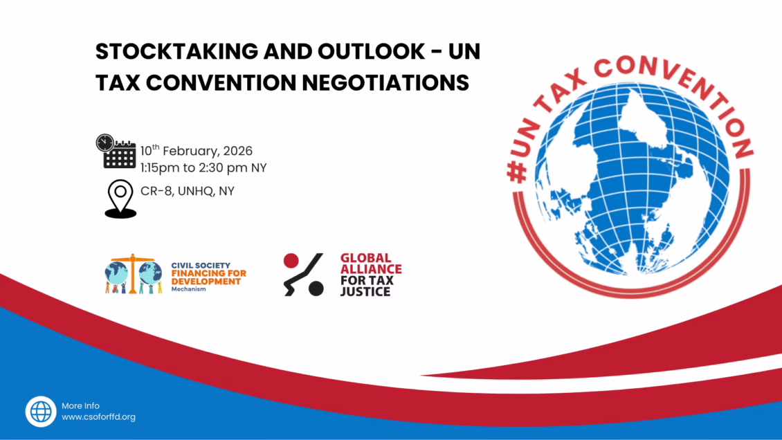 UN Tax Convention – where are we at, and what needs to happen next? Prior to the closing of the fourth negotiating session, this event organized by civil society will present analyses of the state of play and the road ahead, including specific proposals for how to arrive at an “international tax system for sustainable development” foreseen in the Terms of Reference for the Convention.