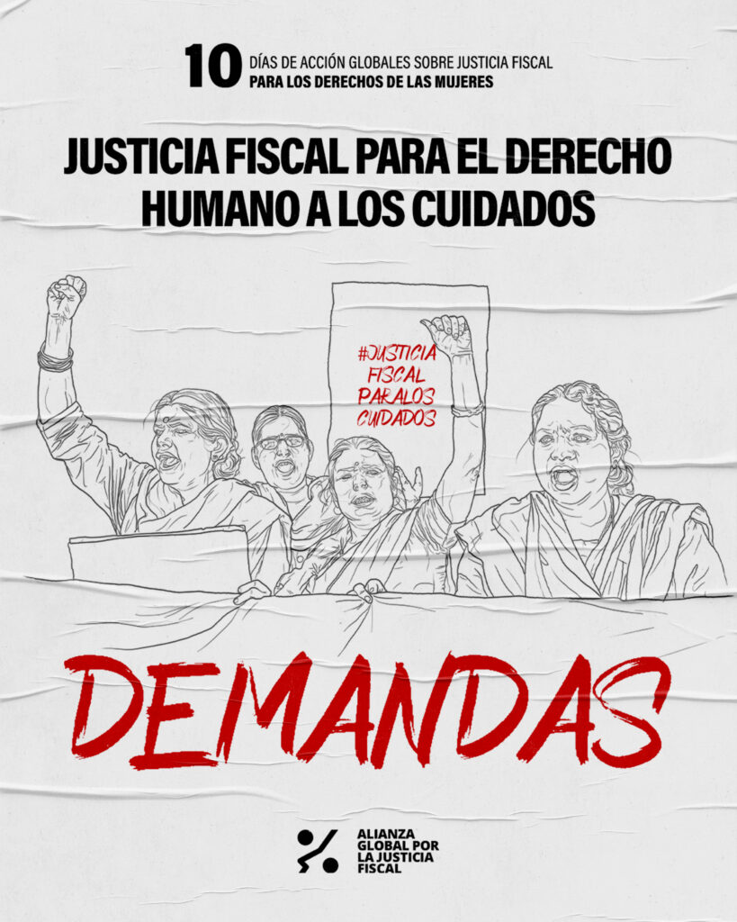 Activistas, organizaciones de defensa de los derechos de las mujeres, movimientos de base, sindicatos y otros miembros de la sociedad civil se unen no solo para celebrar diez años de activismo colectivo en favor de la justicia fiscal y la igualdad de género, sino también para exigir “Justicial Fiscal para el Derecho Humano a los Cuidados.»